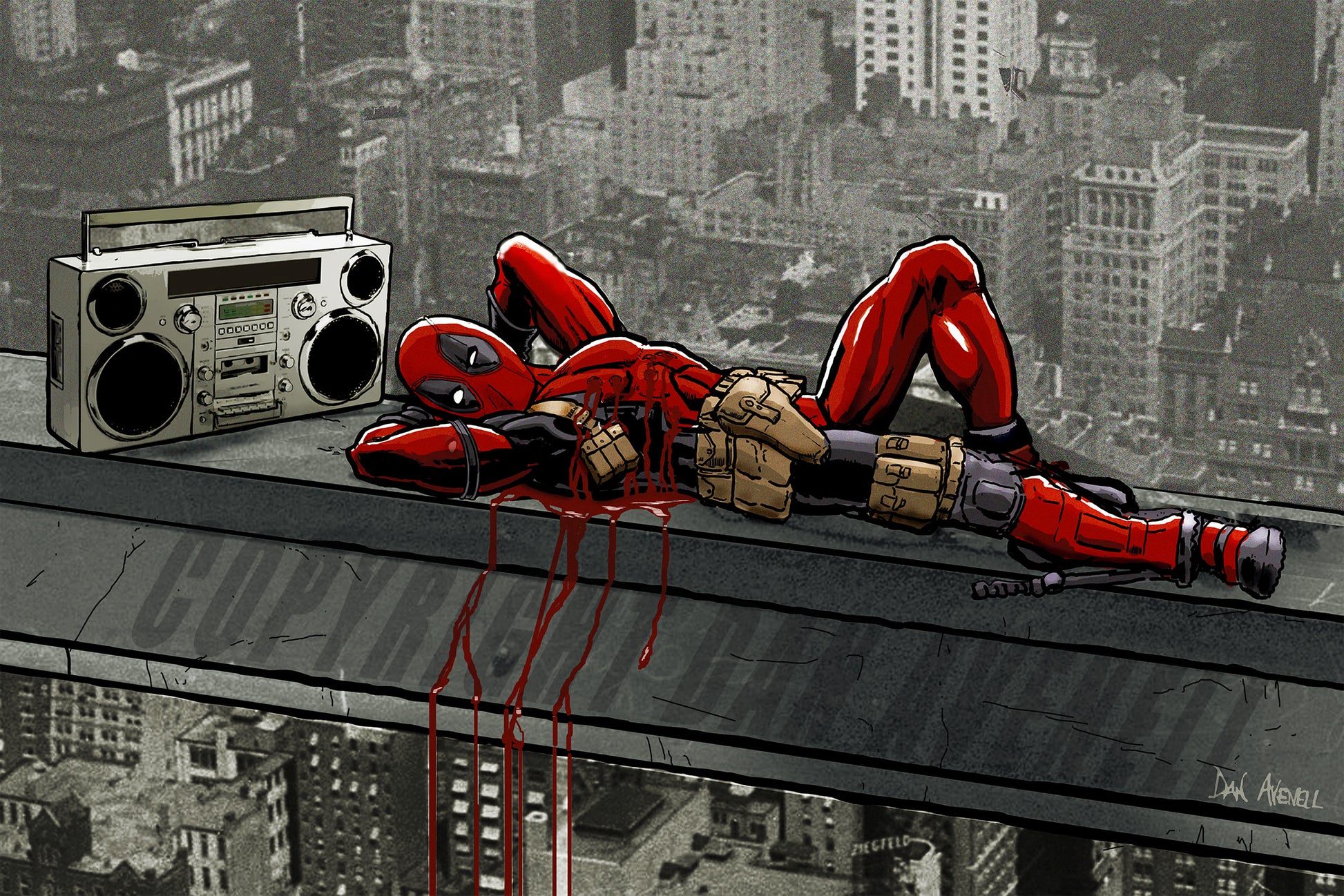 The Merc With The Mouth takes it easy as he heals from a battle... while listening to Wham! of course.
