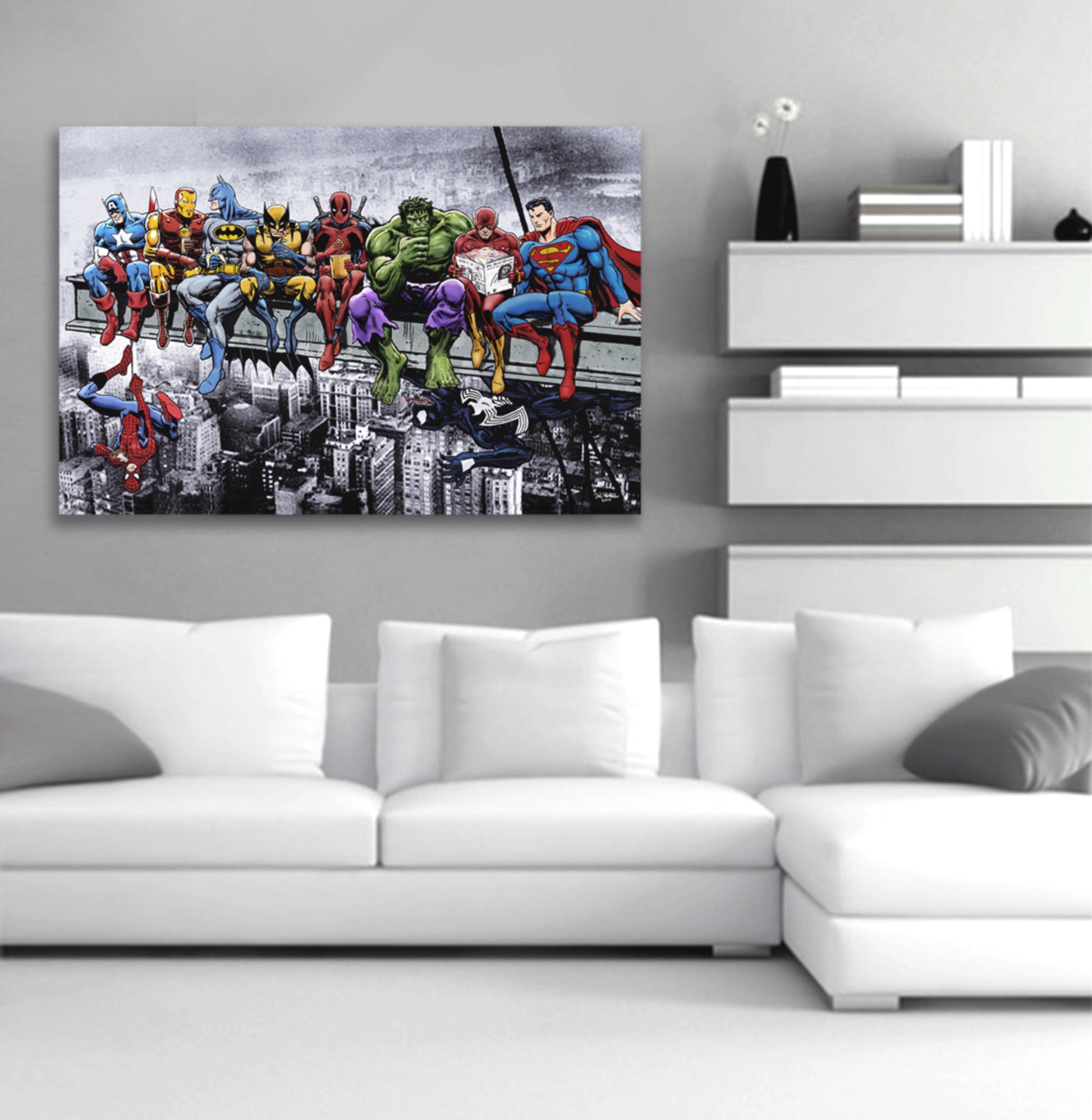 https://avenellart.com/products/marvel-and-dc-superheroes-lunch-atop-a-skyscraper-art-print-poster