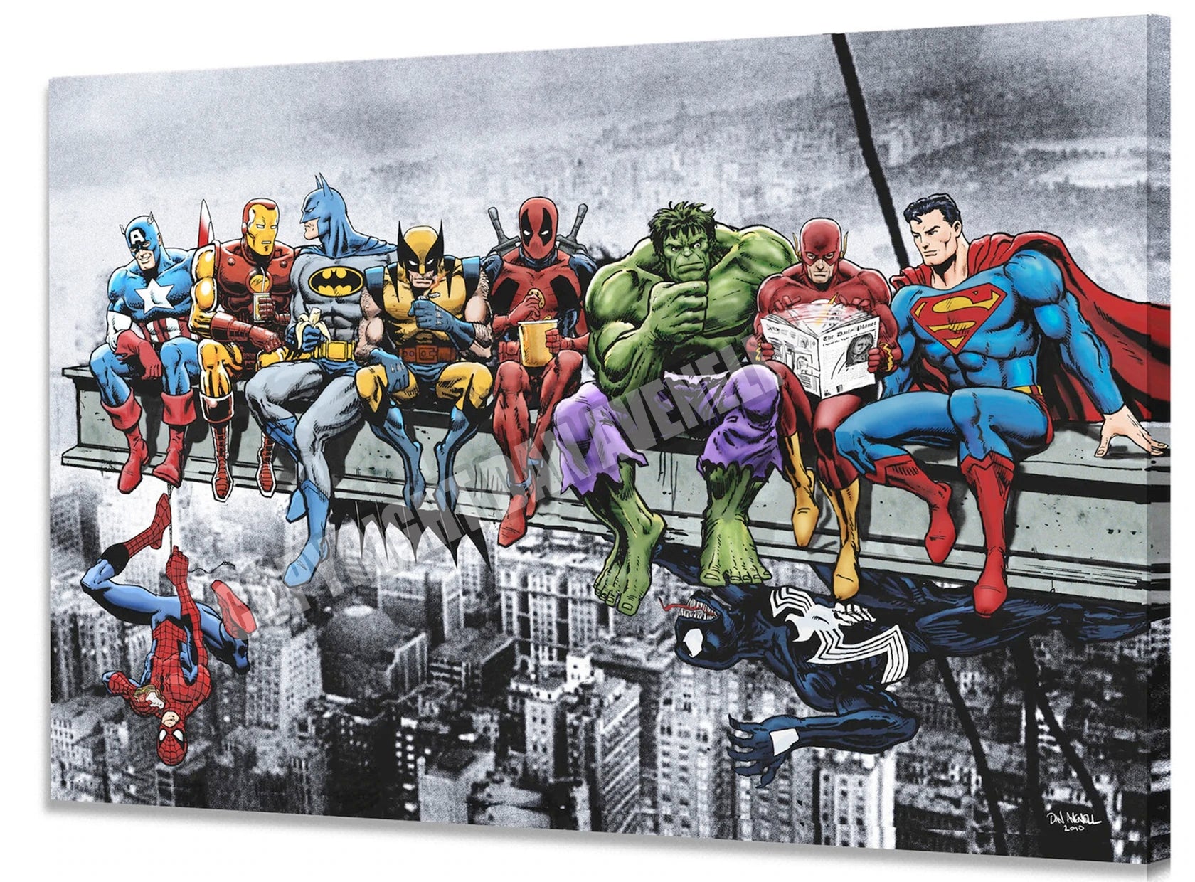 Marvel and DC Superheroes Lunch Atop A Skyscraper - Mounted Canvas