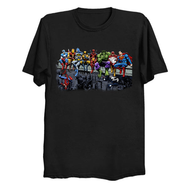 Marvel DC Lunch Atop A Skyscraper T-Shirt by AvenellArt.