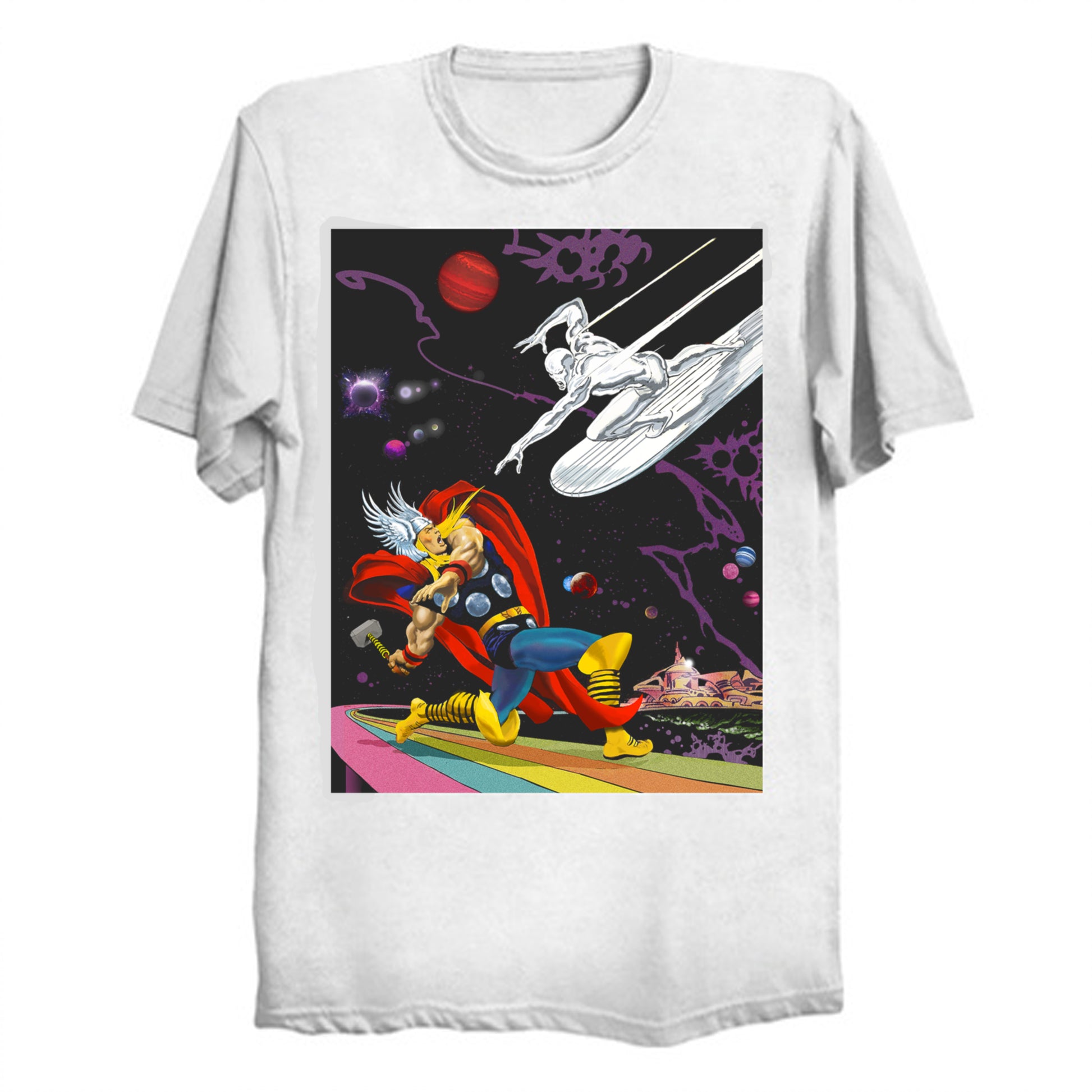 Marvel- Thor vs Silver Surfer T-Shirt by AvenellArt.