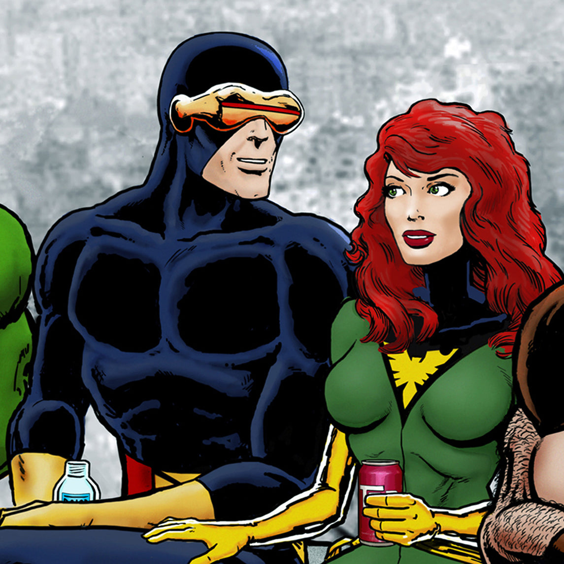 The Uncanny X-Men enjoy some snacks and take a break from saving the universe high above New York. Based on the classic 'Lunch Atop A Skyscraper' photo from the 30s.