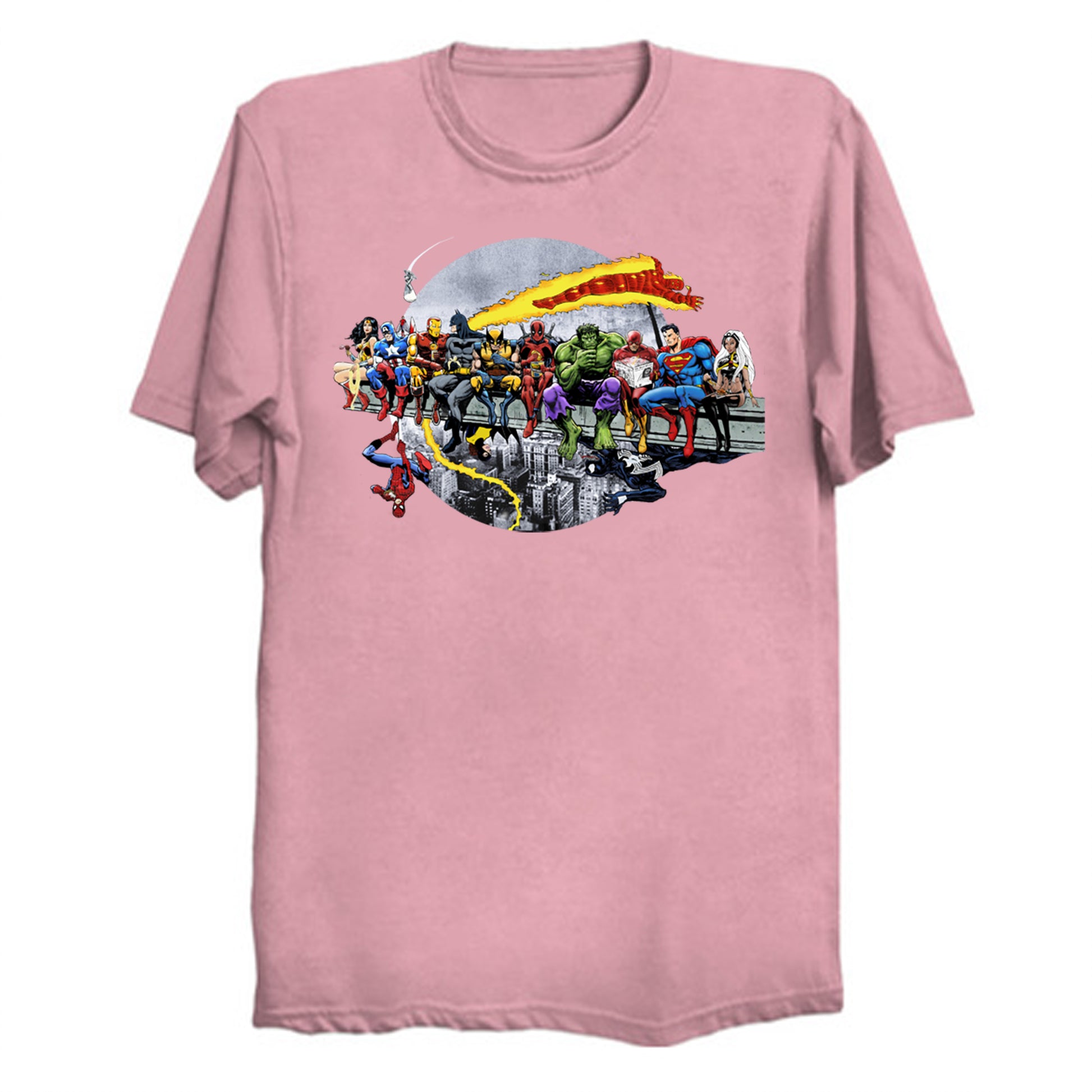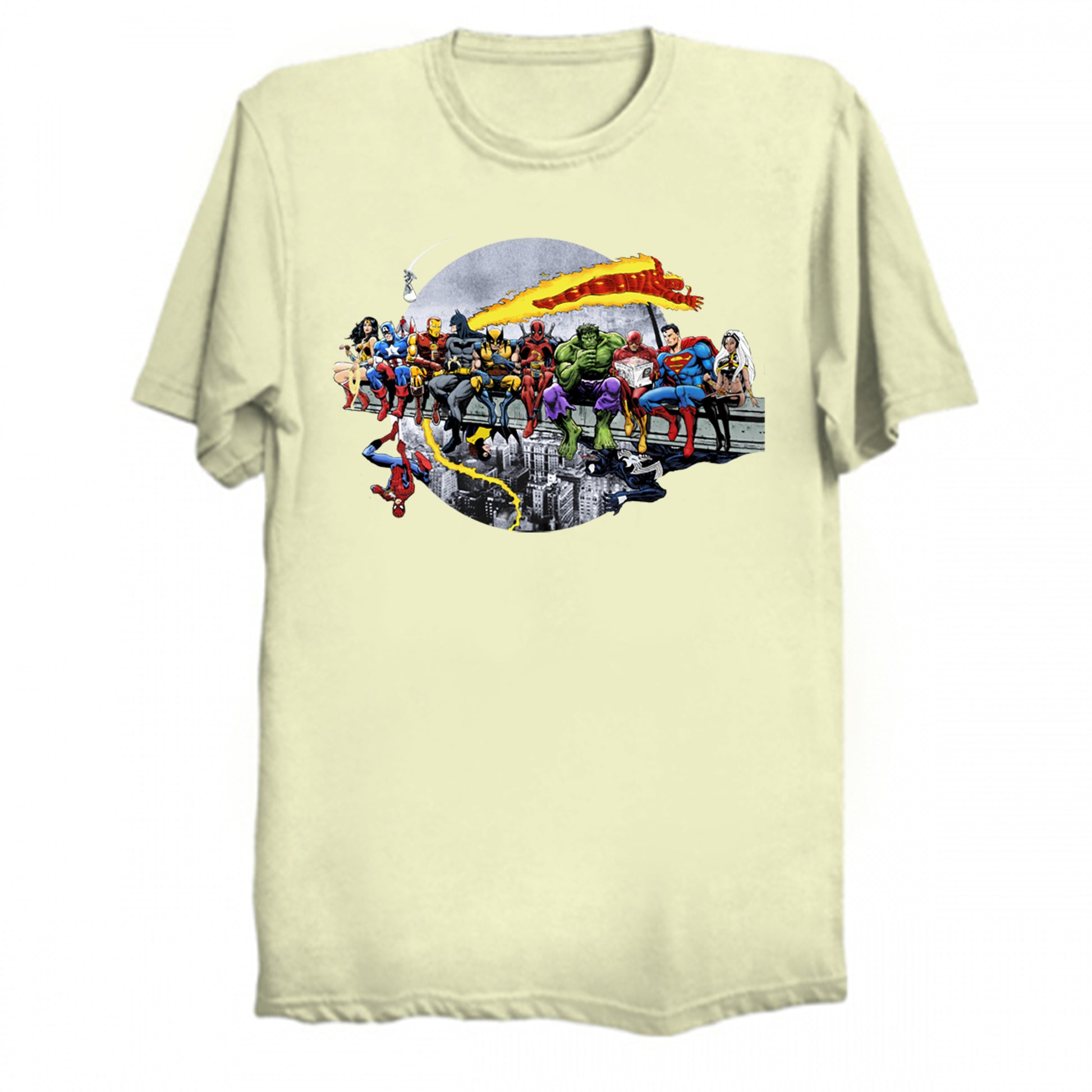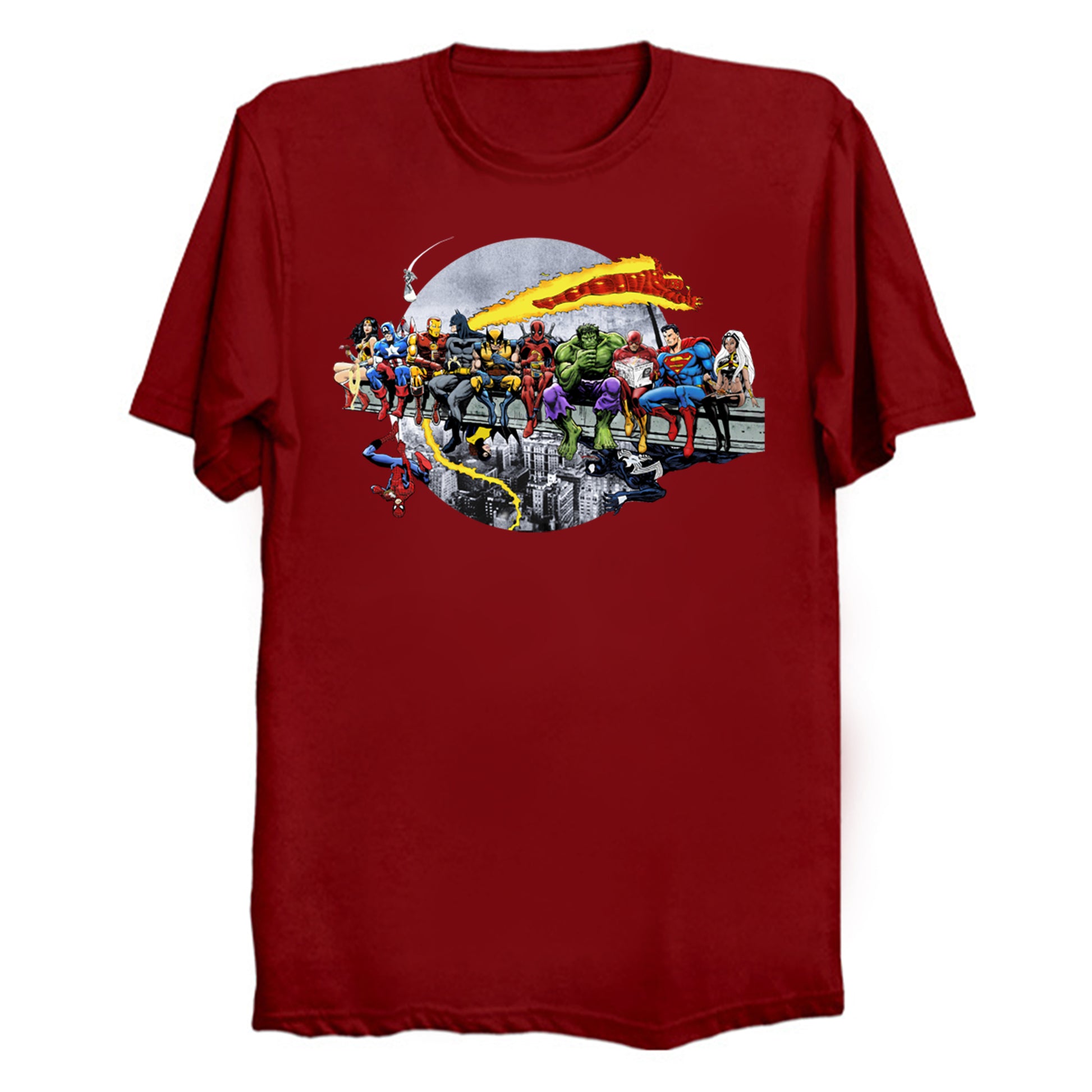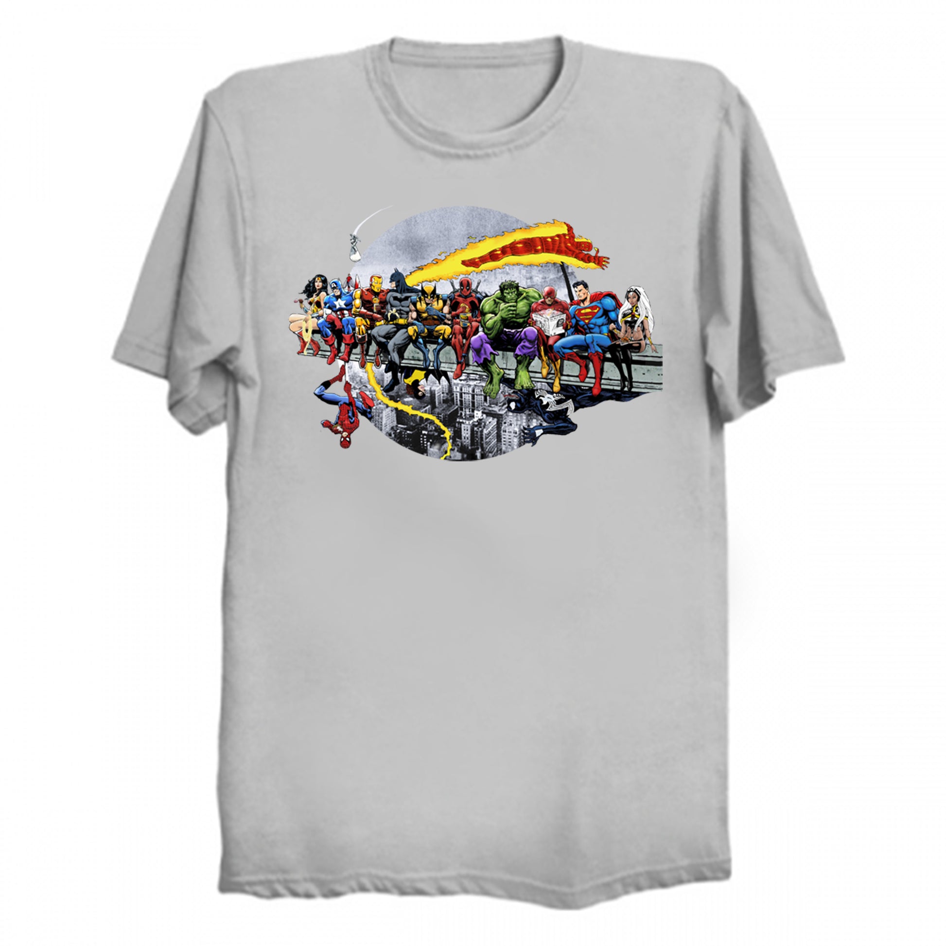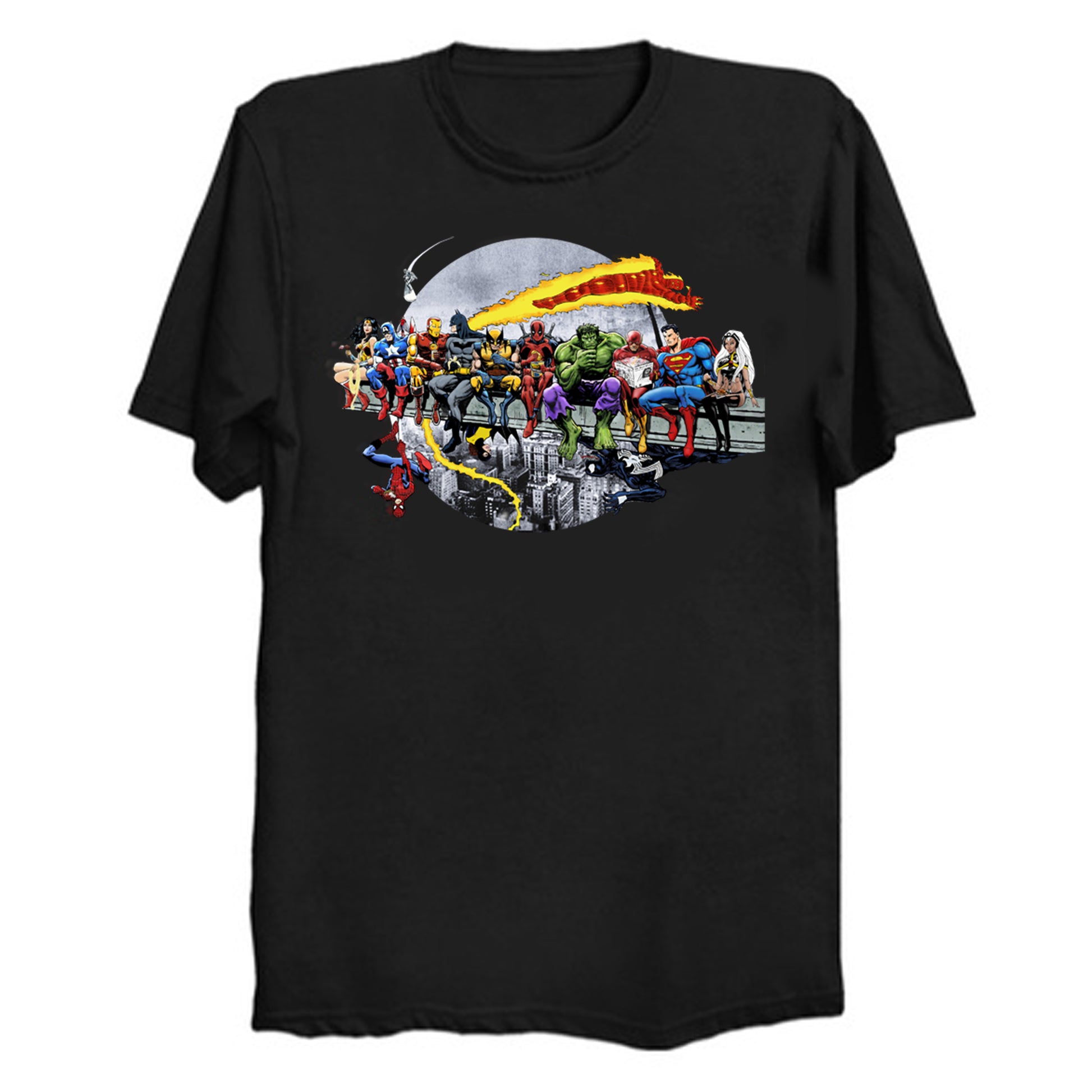 Marvel DC Lunch Atop A Skyscraper T-Shirt by AvenellArt.
